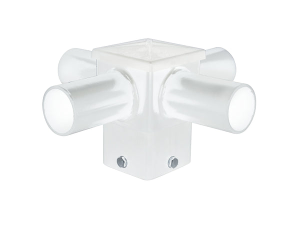 4" or 5" White Short 90° Quad Tenon with 4 x 2-3/8" O.D. Mounting Tenon - Allows 4 light fixtures with standard round slip-fitters to install into a 4" or 5" square pole.